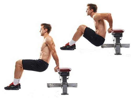 ဒီလေ့ကျင့်ခန်းကို လုပ်မယ်ဆိုရင် Gym ခုံတန်း သို့မဟုတ် ခုံတစ်ခုခုပေါ်သို့ ထိုင်သည့်ဟန်ပြုလုပ်ပါ။ ထို့နောက် လက်နှစ်ဖက်ဖြင့် ကုလားထိုင်အစွန်းကို ကိုင်ပါ။ ခြေထောက်များကို တည့်တည့်ဆန့်ထားပါ။ ထို့နောက် တံတောင်ဆစ်များကို ပခုံးများနှင့် အကြမ်းဖျင်းအပြိုင် ကြမ်းပြင်ဆီသို့ ဖြည်းဖြည်းချင်းနှိမ့်ချပြီး တင်ပါးများကိုပါ တစ်ပြိုင်နက်နှိမ့်ချလိုက်ပါ။ ပြီးလျှင် လက်များ ဖြောင့်တန်းသွားသည်အထိ ပြန်မတ်လိုက်ပါ။