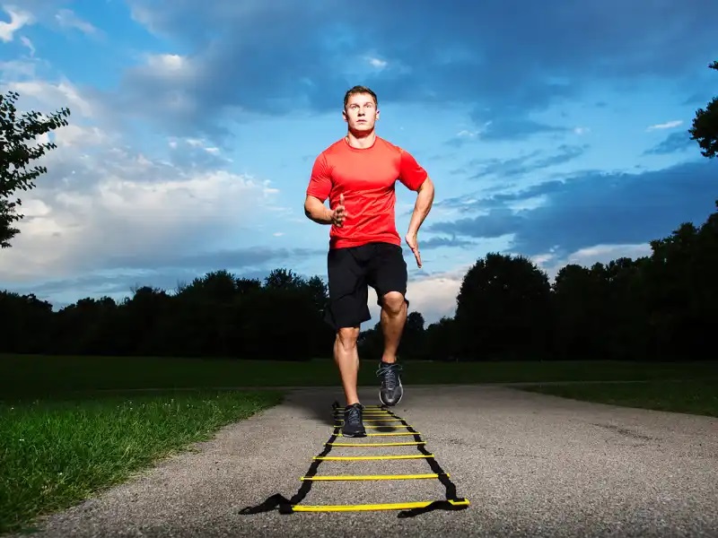 • Agility Ladder ပေါ်က အကွက်တွေအတိုင်း အစတစ်ဖက်ကနေ အဆုံးတစ်ဖက်အထိ ပြေးတာ ၊ ခုန်တာတွေ လုပ်နိုင်ပါတယ်။