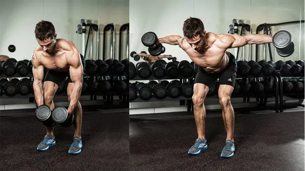 • Bent-Over Reverse Flye ကတော့ Dumbbell ကို လက်တစ်ဖက်တစ်ချက်စီမှာ ကိုင်ထားပြီး ဒူးကိုအနည်းငယ်ကွေးကာ ခန္ဓာကိုယ်ကို ၄၅ ဒီဂရီခန့်ရှေ့သို့ ကိုင်းထားပေးပါ။