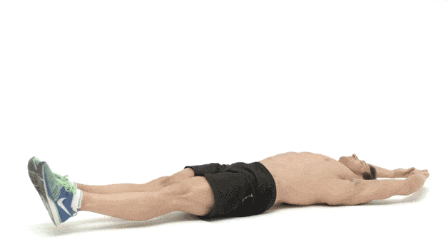 အရင်ဆုံး ကြမ်းပြင်ပေါ်မှာ လှဲလျောင်းလိုက်ပါ။ ပြီးလျှင် လက်နှစ်ဖက်ကို ဦးခေါင်းအပေါ်သို့ ချထားပြီး ခြေထောက်များကို လည်း ကြမ်းပြင်ပေါ်မှာ ချထားပါ။ ထို့နောက် ဒူးကို ရင်ဘတ်ဆီသို့ ဆွဲတင်ကာ ကြမ်းပြင်ပေါ်မှ ကျောကို မတင်လိုက်ပြီး တစ်ပြိုင်နက်တည်း လက်များကိုလည်း ပုံတွင်ပြထားသည့်အတိုင်း ခြေထောက်နဲ့ ထိလုထိခင်အထိ လှုပ်ရှားမှုကို ပြုလုပ်ပါ။