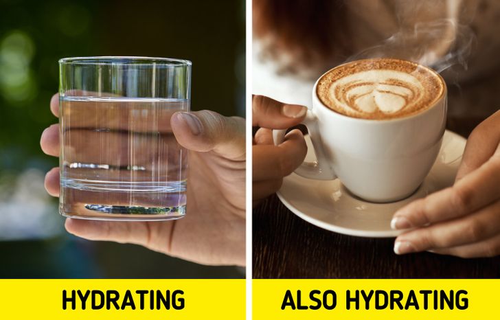 အပေါ်မှာ ပြောခဲ့သလိုပါပဲ။ ကော်ဖီနဲ့ လက်ဖက်ရည်တို့ဟာလည်း ရေဓါတ်အနည်းငယ်ပေးနိုင်မယ့် အဖျော်သောက်စရာအနေနဲ့ သောက်သုံးနိုင်ပါတယ်။ ဒါပေမဲ့လည်း သိပ်များများ သောက်လို့ မကောင်းပါဘူး။ တစ်ရက်ကို ကော်ဖီ ၃ ခွက်ခွဲလောက်အထိပဲ ရေသောက်သလို ရေဓါတ်ထိန်းပေးနိုင်မယ်လို့ လေ့လာမှုတွေက ဖော်ပြထားပါတယ်။