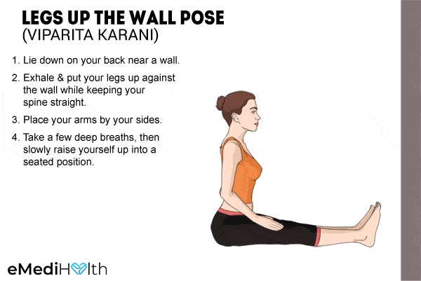 ပထမဆုံးတစ်ခုကတော့ Wall Pose ပါ။ ခန္ဓာကိုယ်ကို ပက်လက်လှန်ကာ ခြေထောက်တွေကို နံရံမှာမှီပြီး မြှောက်ထားရုံနဲ့ သင့်ရဲ့အာရုံကြောစနစ်သို့ နှိပ်နယ်ပေးလိုက်သလို သက်ရောက်မှု ရှိသွားစေပြီး ဦးနှောက်ကို အပန်းပြေစေမယ့် အချက်ပြမှုတွေကို ပေးပို့နေမှာဖြစ်ပါတယ်။ ဒီ Pose က နှလုံးနဲ့ အတွင်းအင်္ဂါတွေဆီကို သွေးစီးဆင်းမှုကိုကောင်းစေပြီး အောက်ဆီဂျင်နဲ့ အာဟာရဓါတ်တွေကို ပြန်လည်ဖြည့်တင်းပေးပါတယ်။
