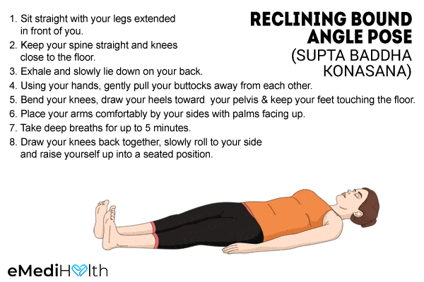 Reclining Bound Angle လို့ခေါ်တဲ့ အံ့သြဖွယ်ကောင်းတဲ့ ကိုယ်ဟန်အနေအထား ယောဂလေ့ကျင့်ခန်းကတော့ တွန်းအား ဒါမှမဟုတ် တင်းမာမှုမရှိဘဲ ခန္ဓာကိုယ်နောက်ပိုင်းကို ညင်သာစွာ ဆန့်ထုတ်နိုင်ဖို့ ကမ္ဘာကြီးရဲ့ဆွဲငင်အားကို အသုံးပြုပြီး လေ့ကျင့်ရတာ ဖြစ်ပါတယ်။ ဒီယောဂ Pose က သင်ရဲ့ နောက်ကျောအောက်ပိုင်းကြွက်သားတွေနဲ့ တင်ပါးတွေအတွက် အသက်ကယ်နည်းလမ်းတစ်ခုလည်း ဖြစ်ပါတယ်။