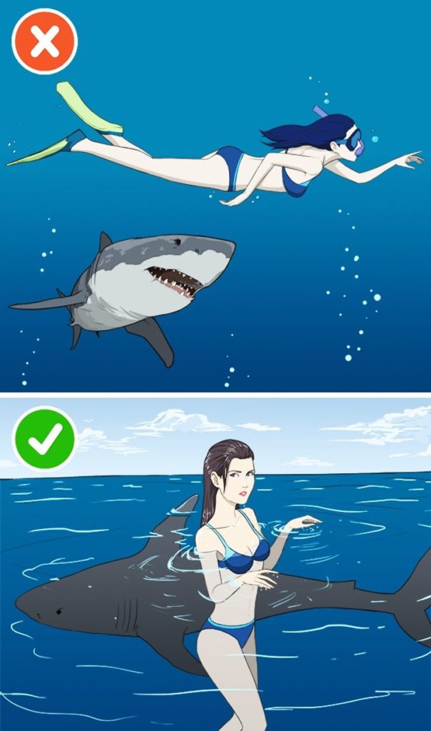 ငါမန်းတွေနဲ့တွေ့တဲ့အခါမှာ လွတ်အောင်ရေကူးခြင်းက အကူအညီမပေးနိုင်ပါဘူး။ အသက်ဘေးက လွတ်ချင်တယ်ဆိုရင်တော့ ဘာမှမလုပ်ဘဲ ငြိမ်ငြိမ်လေးနေခြင်းပါပဲ။ အကယ်၍ နေလို့မရဘူးဆိုရင်တော့ ငါးမန်ရဲ့ မျက်လုံး၊ ပါဟက် (သို့) နှာခေါင်းထိပ်ကို ထိအောင်တိုက်ခိုက်ပေးပါ။