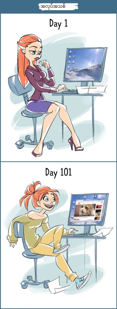 လူတော်တော်များများက ဖုန်းအသစ်တွေ (သို့) ပစ္စည်းအသစ်တွေ ရပြီဆိုရင် တယုတယနဲ့ အရမ်းတန်ဖိုးထားတက်ကြတယ်။ ဖုန်းအသစ်တွေဆိုရင် ဖုန်လေးတစ်စက်တောင် အကပ်မခံအောင် ထိန်းသိမ်းထားကြတယ်။ ဒါပေမယ့် ရက်ပေါင်း (၁၀၀) လောက်ကြာသွားပြီဆိုရင်တော့ အခြေအနေတွေက တစ်မျိုးတစ်ဖုံး ပြောင်းလဲသွားကြတယ်။ ဘယ်လိုပြောင်းလဲသွားကြလဲဆိုတာကို kwee page က ပုံနဲ့တကွ ဖော်ပြပေးလိုက်ပါတယ်။