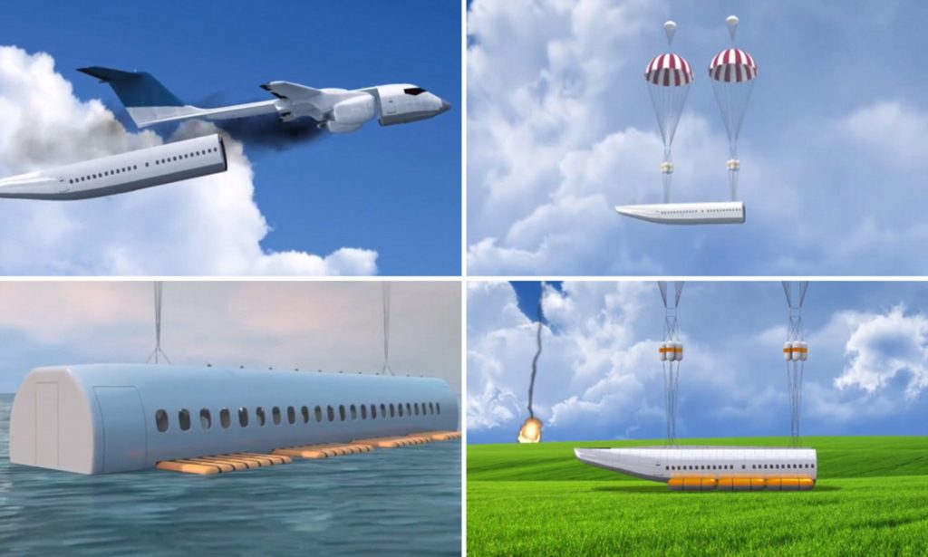 ပုံပါလေယာဉ်ဟာ အရေးပေါ်အခြေအနေမှာ သူ့ရဲ့ကိုယ်ထည်တစ်ခုလုံးကို ဖြုတ်ထုတ်ပြီး ပါဝင်တဲ့လေထီးတွေကို အသုံးချပြီး ခရီးသည်တွေကို မြေပြင်ပေါ် ဘေးကင်းစွာ ဆင်းသက်နိုင်စေတဲ့ တည်ဆောက်မှုပုံစံပါ။