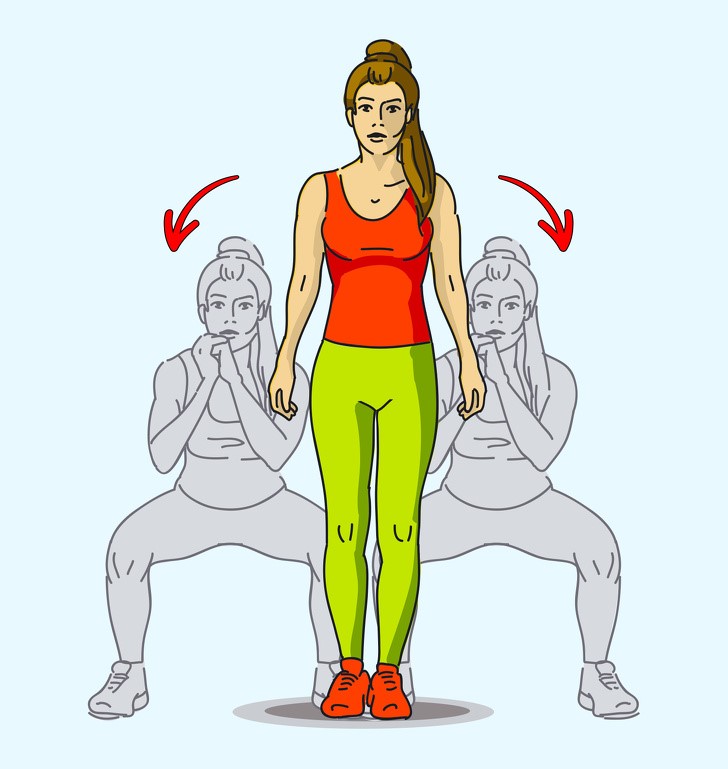 - ဝမ်းဗိုက်က တင်းမာနေရပါမယ်။ ဘေးတစ်ဖက်ကို ခြေလှမ်းကျယ်ကျယ်ဟ လိုက်ပါ။ ဆောင့်ကြောင့်ထိုင်ပုံစံအတိုင်းပဲ ဆက်နေပေးပါ။