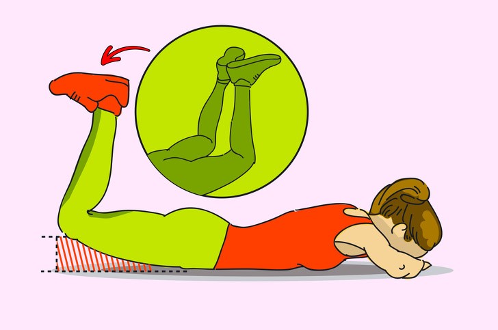 - ဝမ်းလျားမှောက်ကြမ်းပြင်ပေါ်အိပ်လိုက်ပါ။ ခြေထောက်တွေကို ဆန့်ထုတ်ထားပါ။