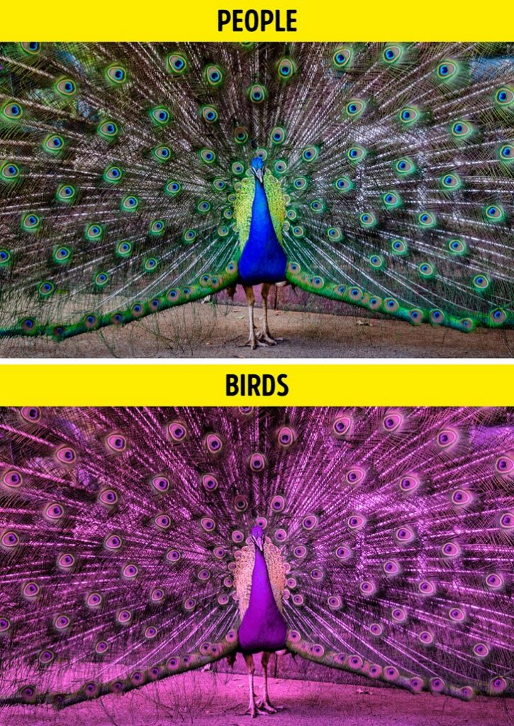 လူတွေရဲ့မျက်လုံးနဲ့မမြင်နိုင်တဲ့ ခရမ်းလွန် ကိုတောင် မြင်နိုင်စွမ်းရှိကြတယ်။ ဥပမာ လူတွေကို ငှက်အမည်းရောင်ကို မြင်နေရပေမယ့် သူတို့အချင်းချင်းကျတော့ အရောင်အသွေးစုံလင်စွာ မြင်နေတတ်ကြတယ်။