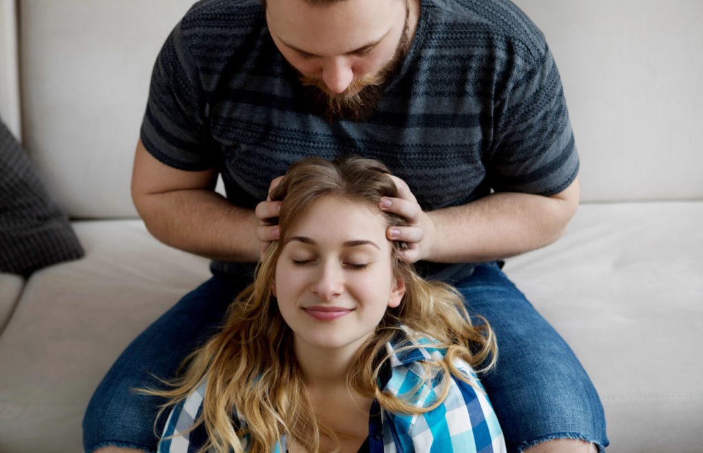ခေါင်းအနောက်တည့်တည့်မှာရှိတဲ့ ဆံပင်တွေကို လက်တစ်ဖက်နဲ့ ဆုပ်ပြီး ကျန်တစ်ဖက်နဲ့ နဖူးထိပ်က ဆံပင်တွေကို ဆုပ်ကိုင်ထားရမှာပါ။ အပေါ်မှာ ပြောခဲ့တဲ့နည်းတွေအတိုင်း ဆံပင်ကို စက္ကန့်အနည်းငယ်ကြာအောင် ဆွဲဆုပ်ထားပြီးမှစက်ဝိုင်းပုံစံ လှုပ်ရှားမှုနဲ့ နှိပ်ပေးရမှာပါ။