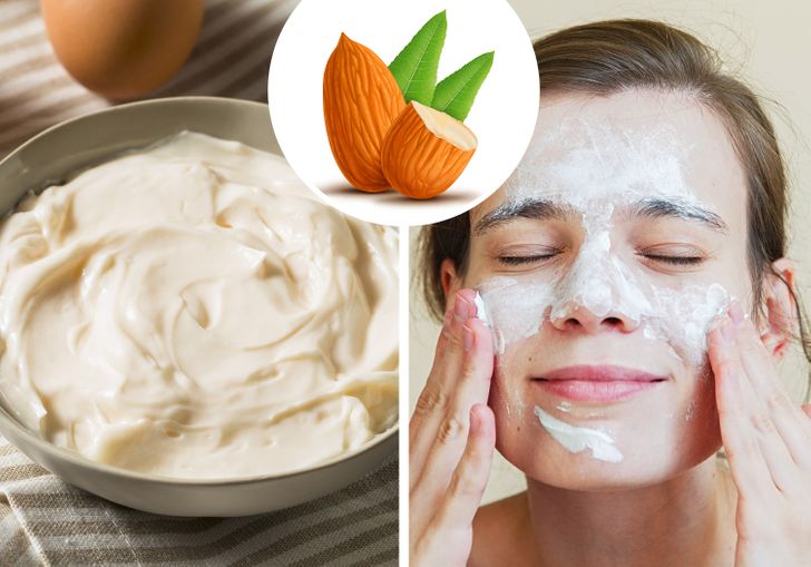 ဆဲလ်သေတွေကို ဖယ်ရှားပေးနိုင်ပြီး အရေပြားအားဖြစ်စေဖို့ပါ။ အယ်လ်မွန်စေ့ ခွက်တစ်စိတ်စာ ၄၀ဂရမ်ကို ကြိတ်စက်မှာ ထည့်ကြိတ်ပါ။ ပြီးရင် မယောနိစ် စားပွဲတင်ဇွန်း ၈ ပုံတစ်ပုံနဲ့ ရောပါ။ ရလာတဲ့ အနှစ်ကို မျက်နှာပေါ်မှာ ငြင်ငြင်သာသာလေး လိမ်းပြီး နှိပ်ပေးပါ။ ၁၀ မိနစ်လောက် ကြာရင် ရေခပ်နွေးနွေးနဲ့ ဆေးကြော သန့်စင်ပေးဖို့ လိုပါတယ်။