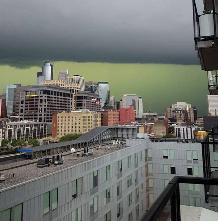 မုန်တိုင်းကြောင့် အစိမ်းရောင်ပြောင်းသွားတဲ့ ကောင်းကင်