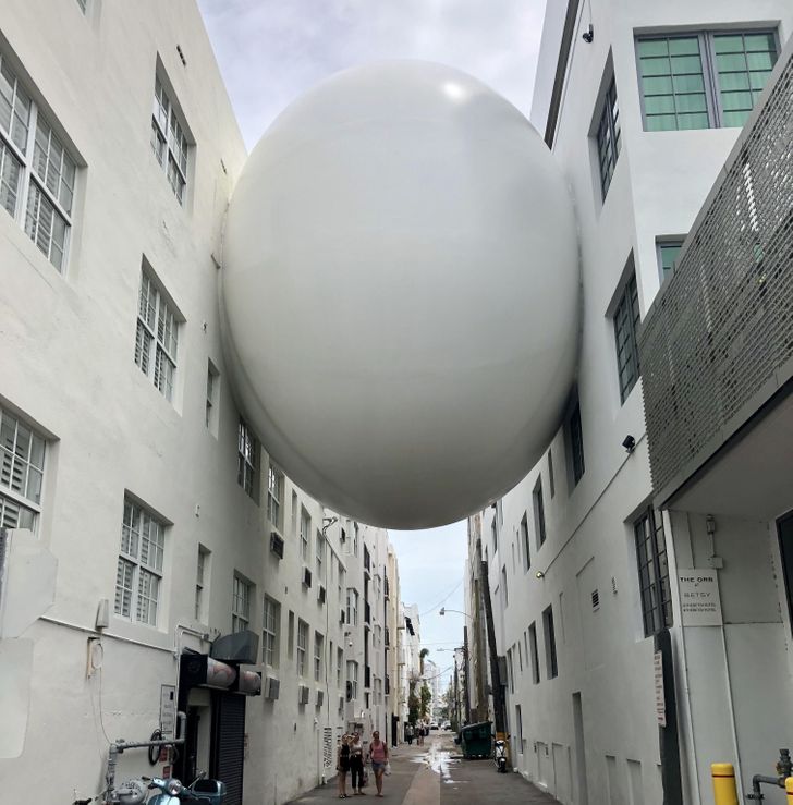 အဆောက်အအုံနှစ်ခုကို ဆက်ပေးထားတဲ့ ဘောလုံး