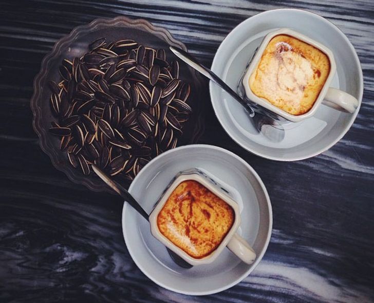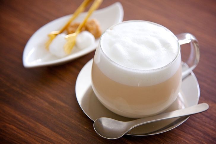 အမြှုပ်တွေထနေတဲ့ နွားနို့ခွက်ထဲမှာ ကော်ဖီပြင်းပြင်းလေးထည့်ပြီး သောက်ကြတယ်။