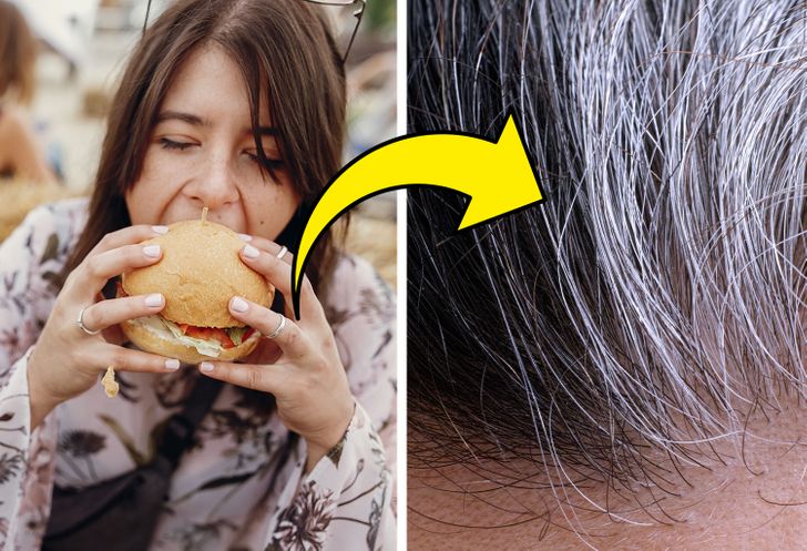 ကျန်းမာရေးနဲ့ညီညွတ်တဲ့ အစားအစာတွေ မစားခြင်းကလည်း ဆံပင်ဖြူစေပါတယ်။ လေ့လာမှုတွေအရ ferritin၊ ကယ်လ်စီယမ်၊ ဗီတာမင် D3၊ ကော်ပါး၊ ဇင့်၊ သံဓာတ်တွေက ဆံသားကို ကျန်းမာအောင် ထိန်းပေးနိုင်တယ်လို့ သိရပါတယ်။